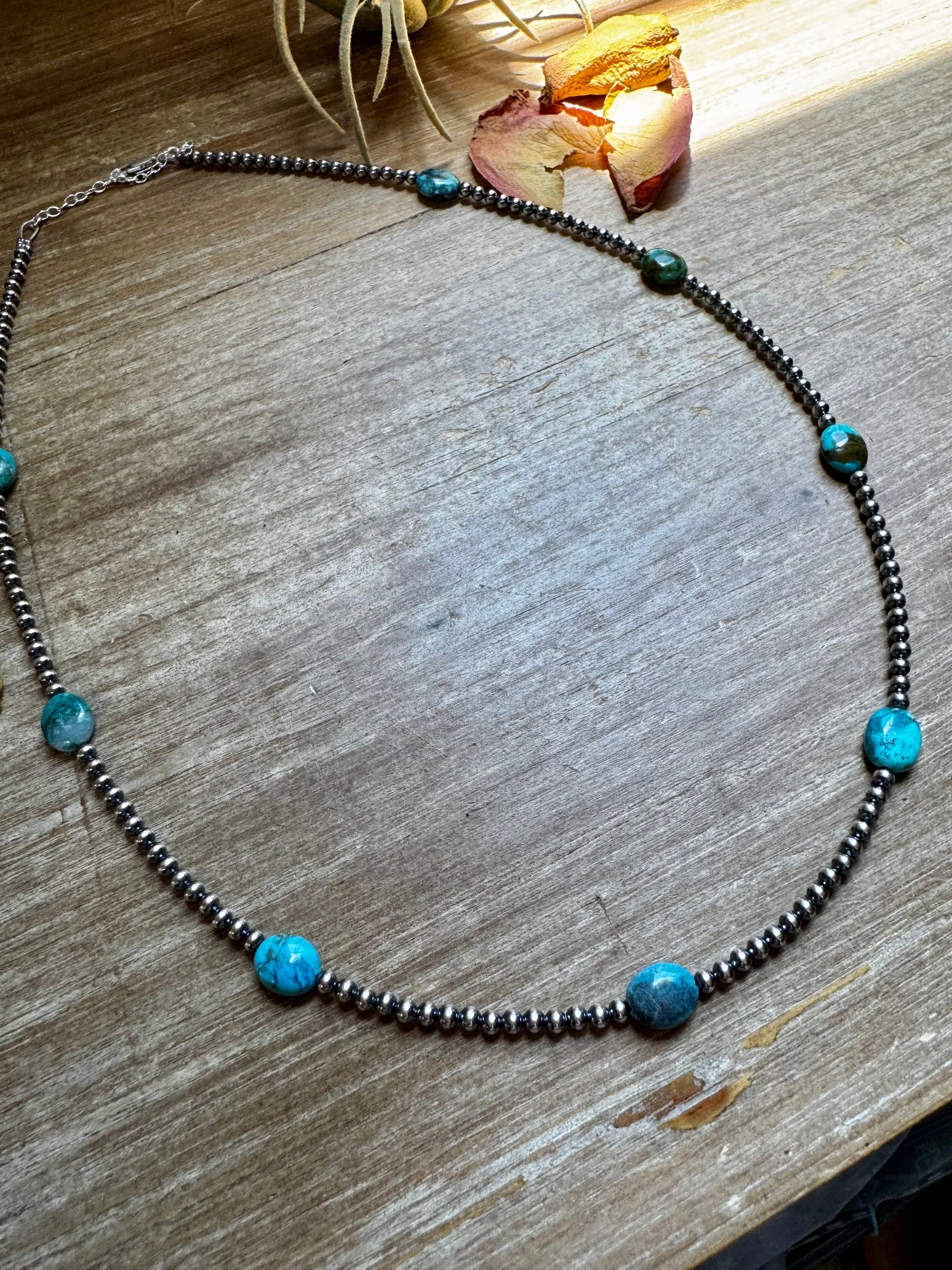 Each necklace is unique in color due to natural turquoise variation