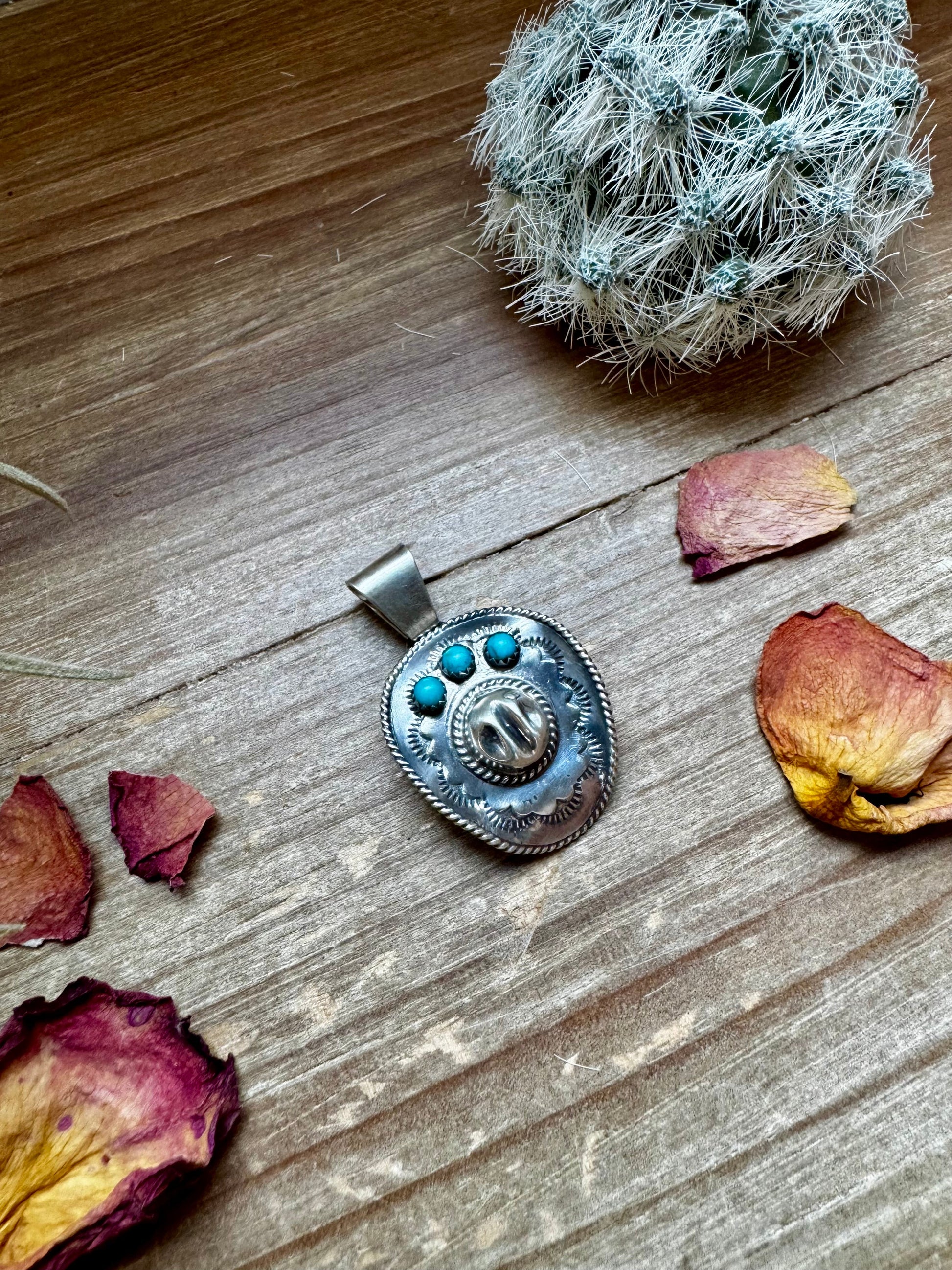 Cowboy Hat Pendant - Kingman Turquoise & Sterling Silver