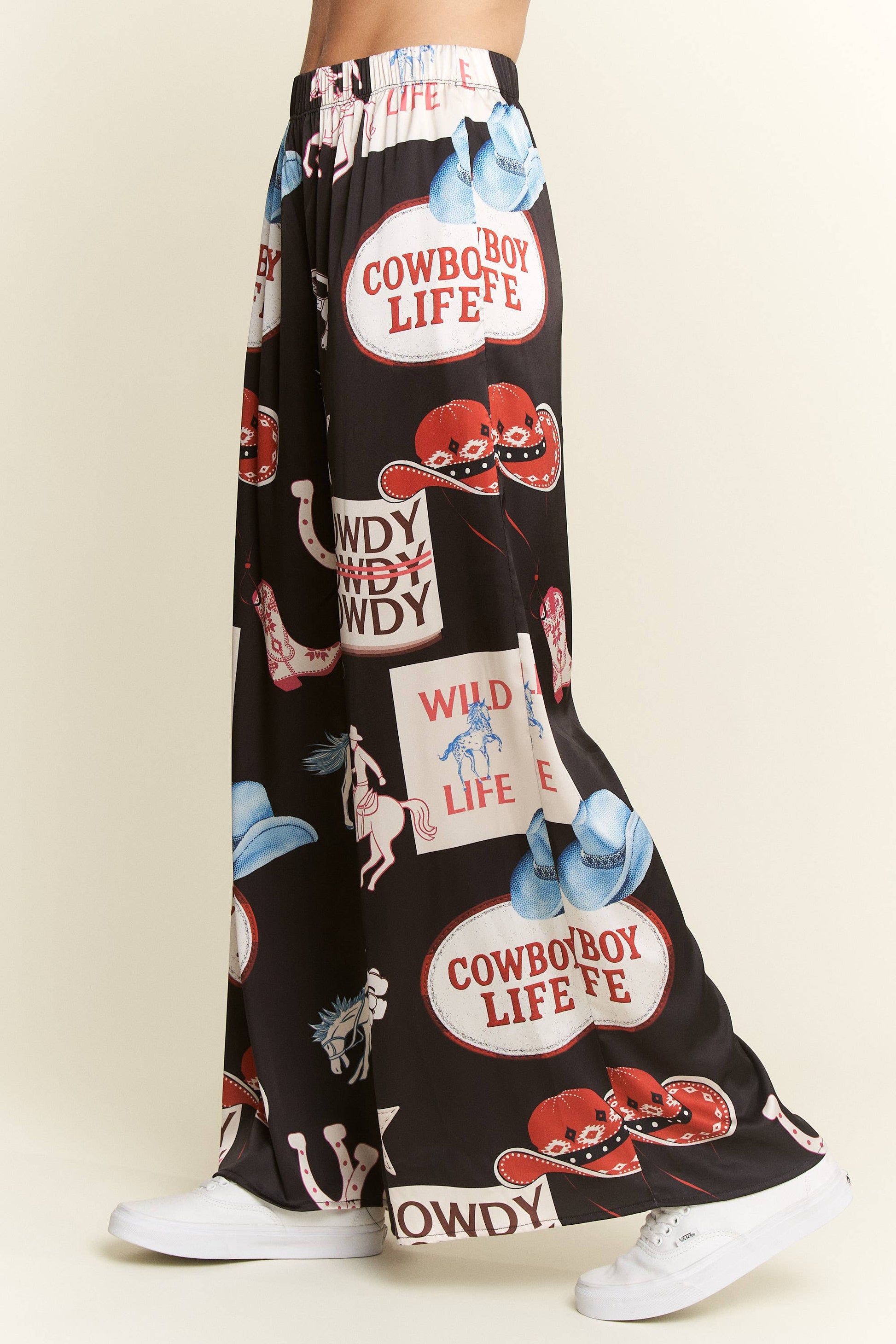 COWBOY PARTY PANTS - Full length - Wide flowy leg - Elastic waistband - Print - Pockets 97% POLYESTER 3%SPANDEX