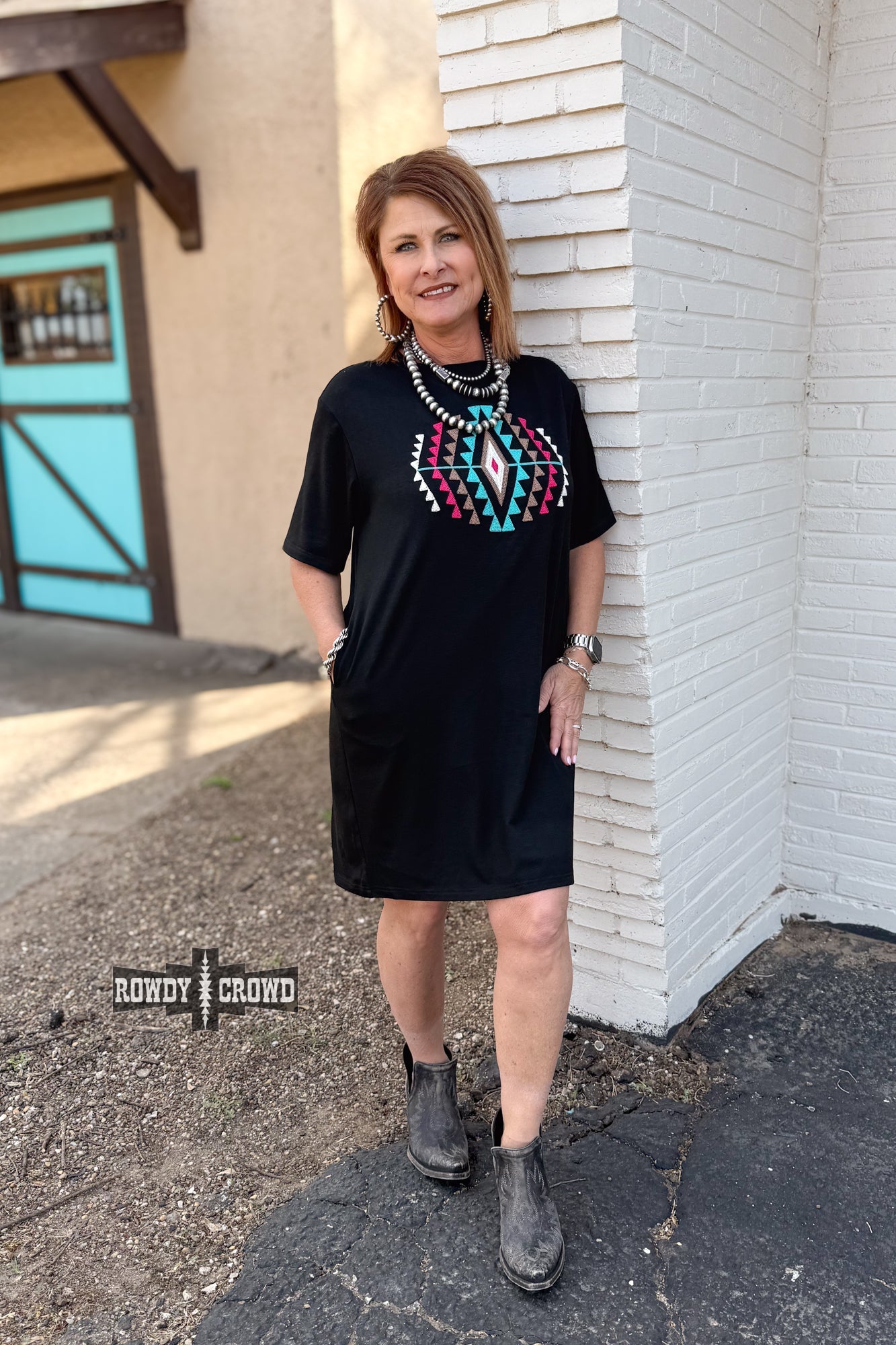 turn heads with the Desert Rose Dress! This t-shirt style dress has a knitted aztec design and can easily be paired with your favorite duster. Whether you're attending a concert or enjoying a casual day out, this dress adds a touch of western elegance to any occasion!