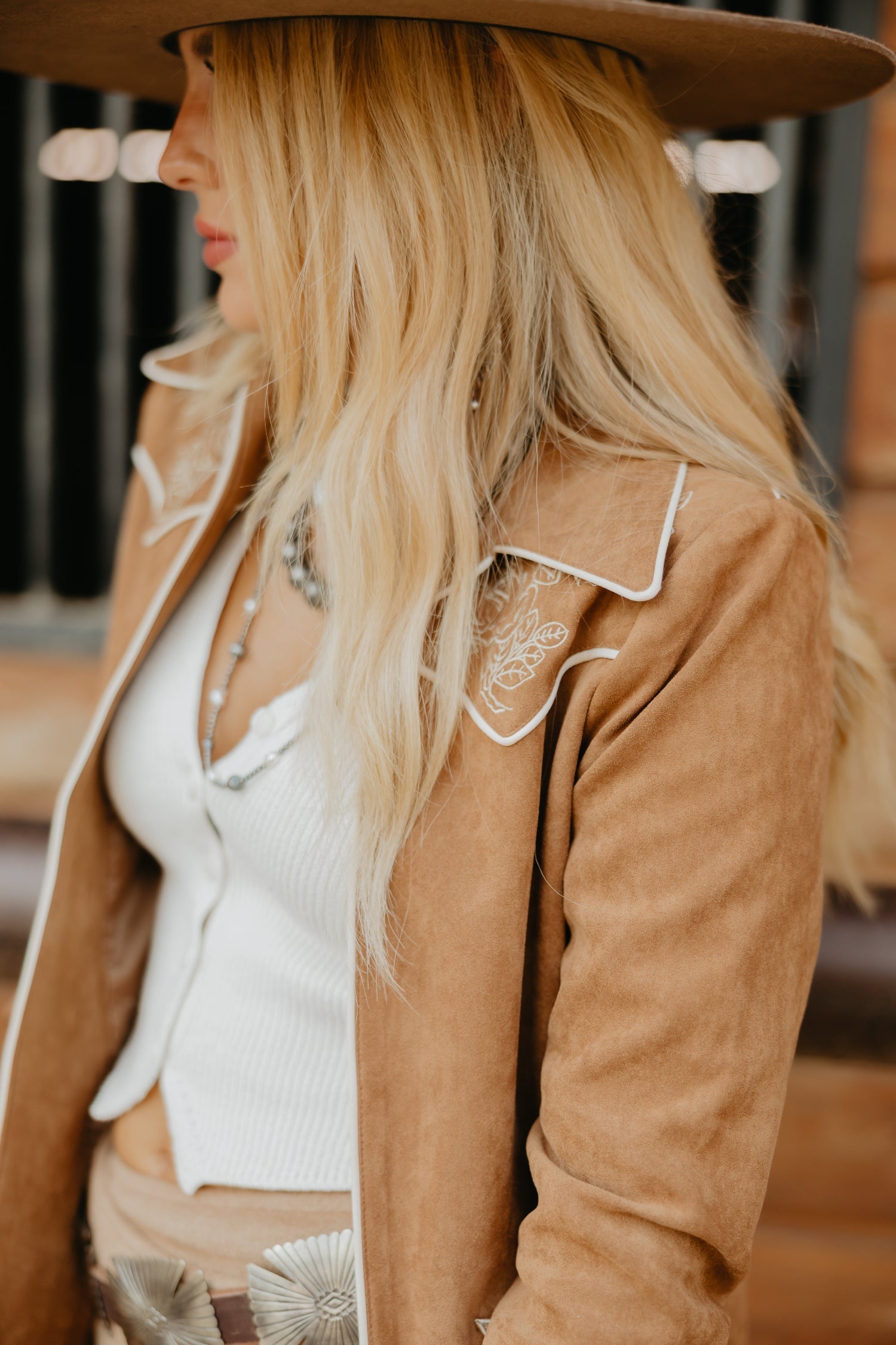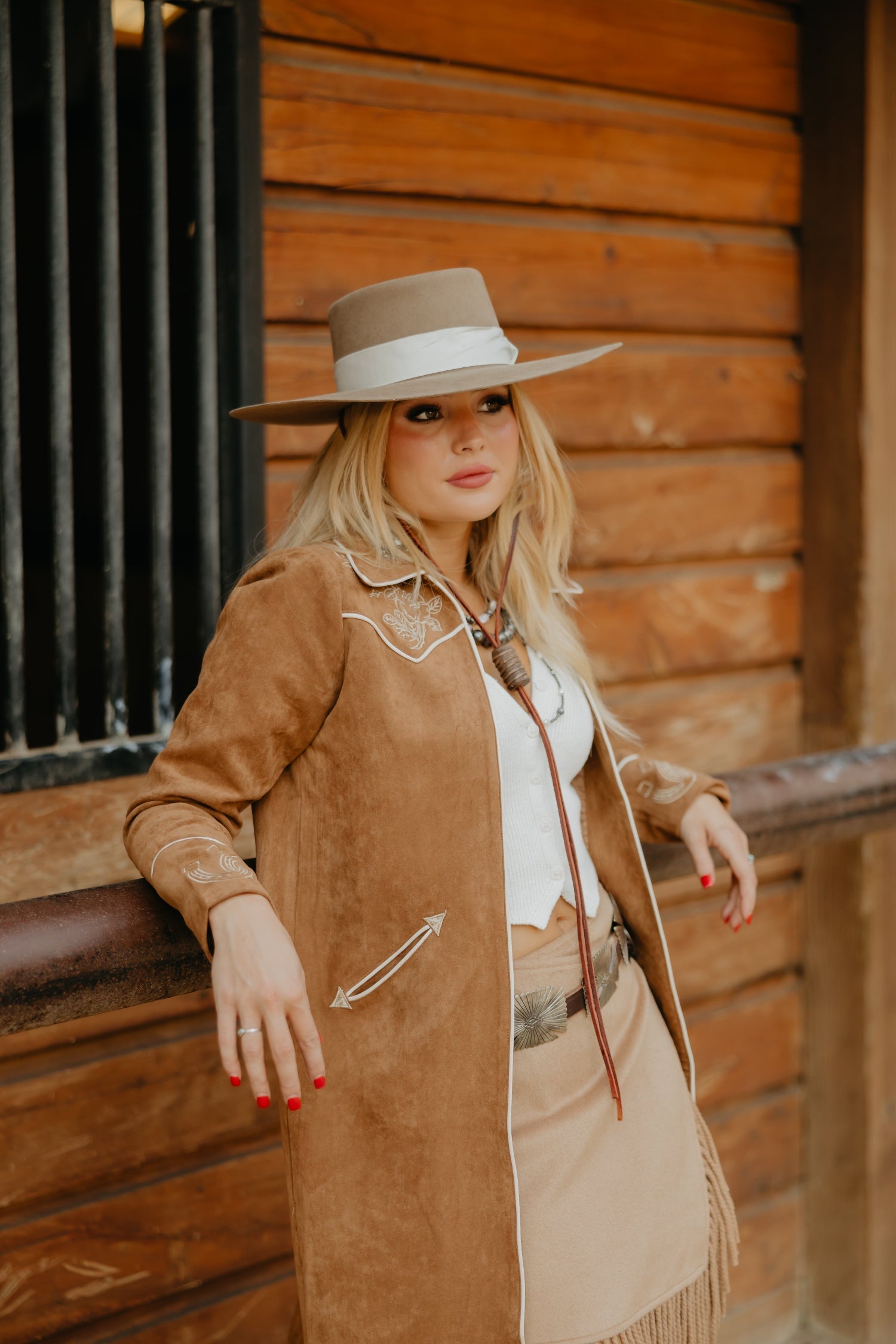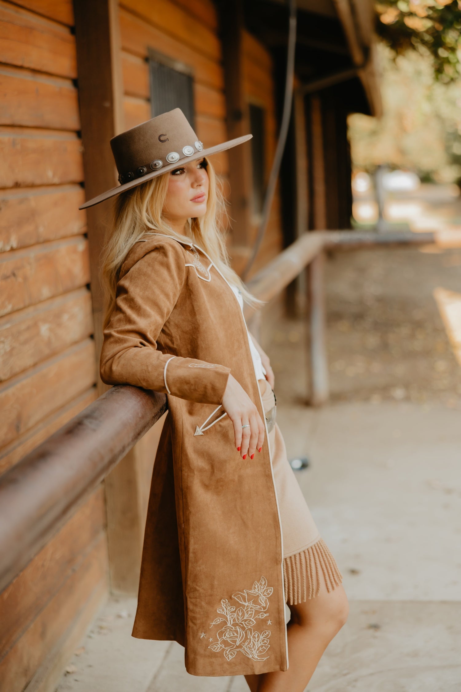 The Hall of Fame Duster is made for legends in the making. This long brown coat features classic smile pockets and intricate embroidery that nods to vintage Western tailoring. It’s elegant, iconic, and built for cowgirls who were born to stand out.
