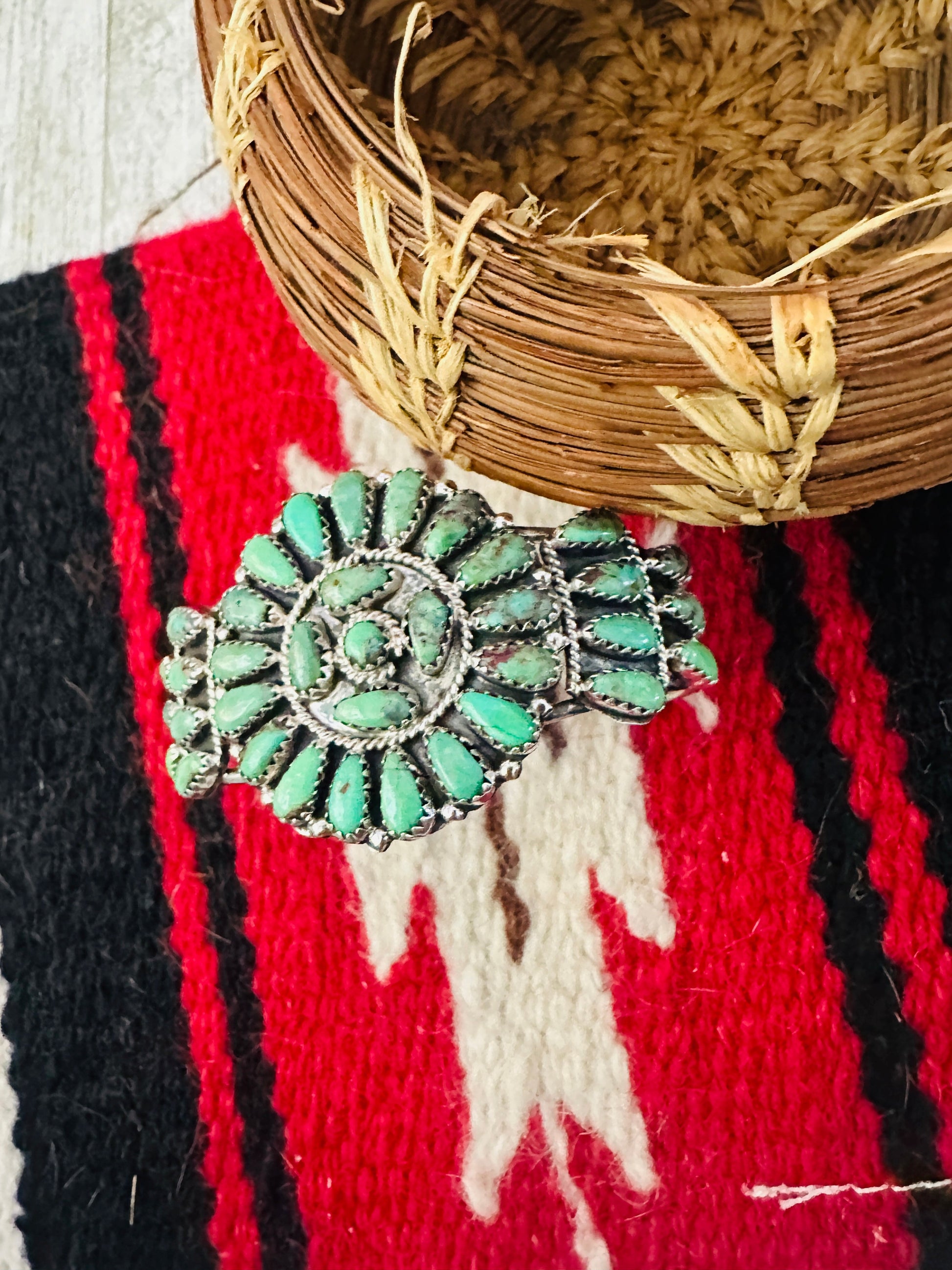 Handcrafted Turquoise & Sterling Silver Cluster Cuff Bracelet
