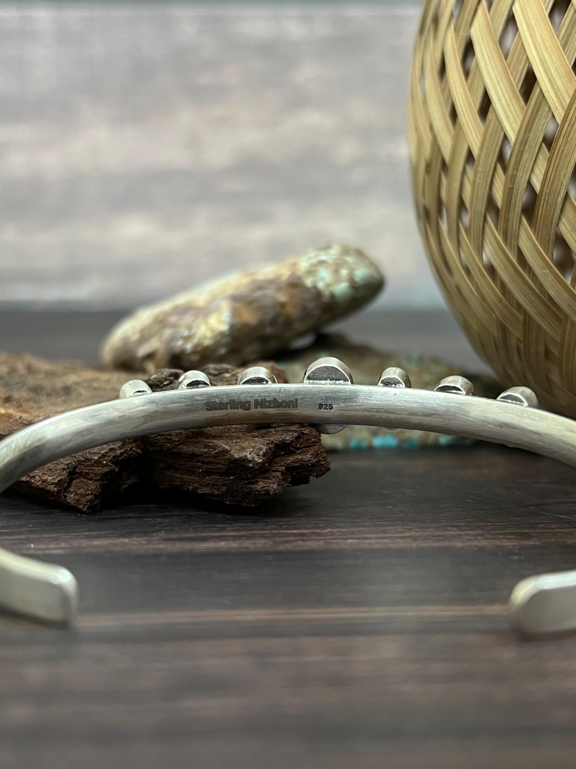 Handmade Sterling Silver Emerald Valley Turquoise Bracelet with Signed Nizhoni