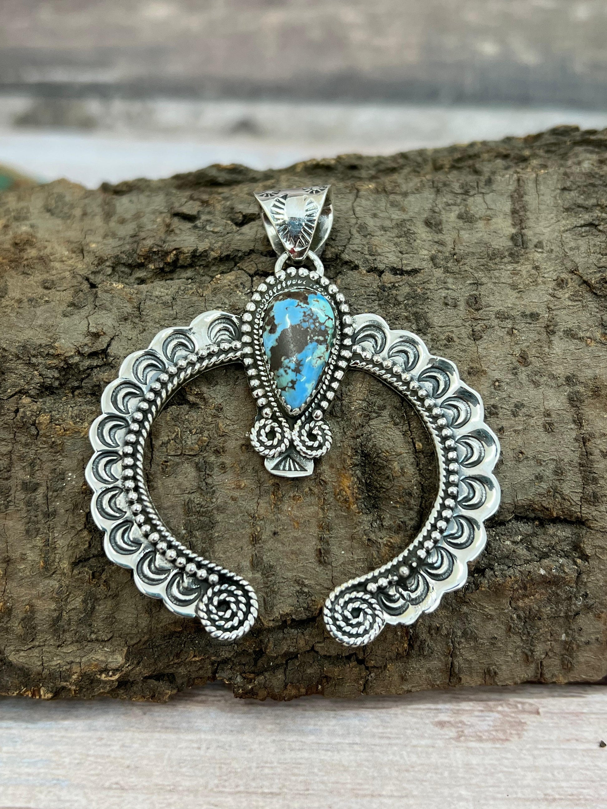 Handmade Sterling Silver Golden Hills Turquoise Pendant with Signed Nizhoni