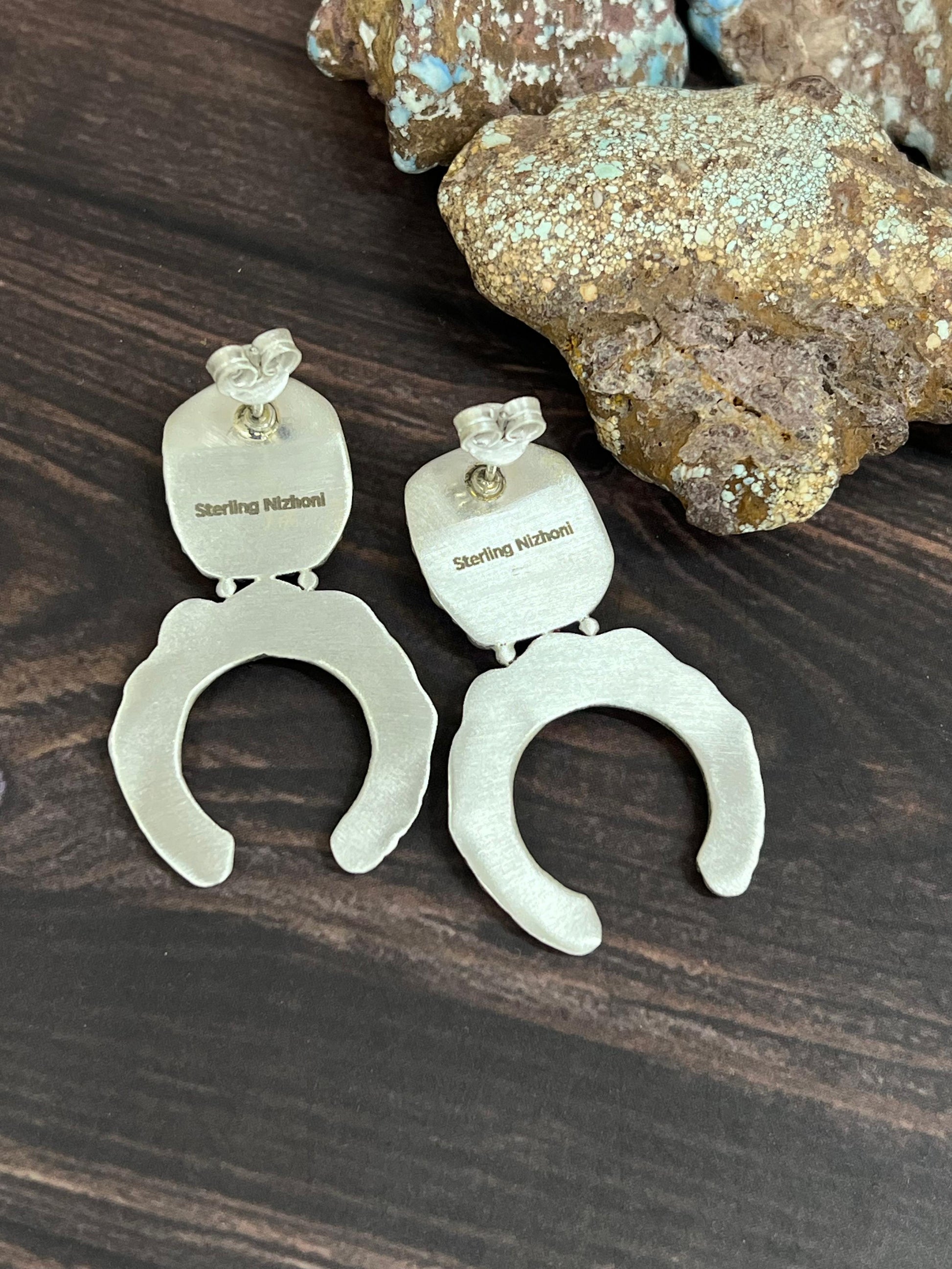 Handmade Sterling Silver Golden Hills Turquoise Post Dangle Earrings with Signed Nizhoni