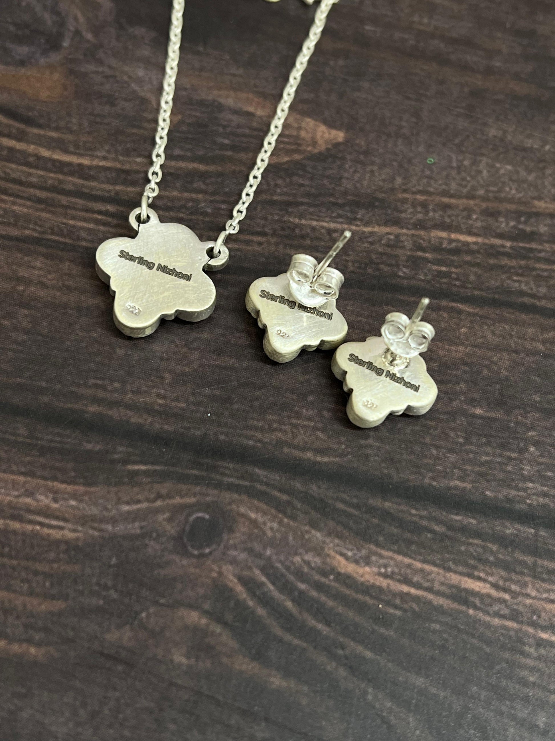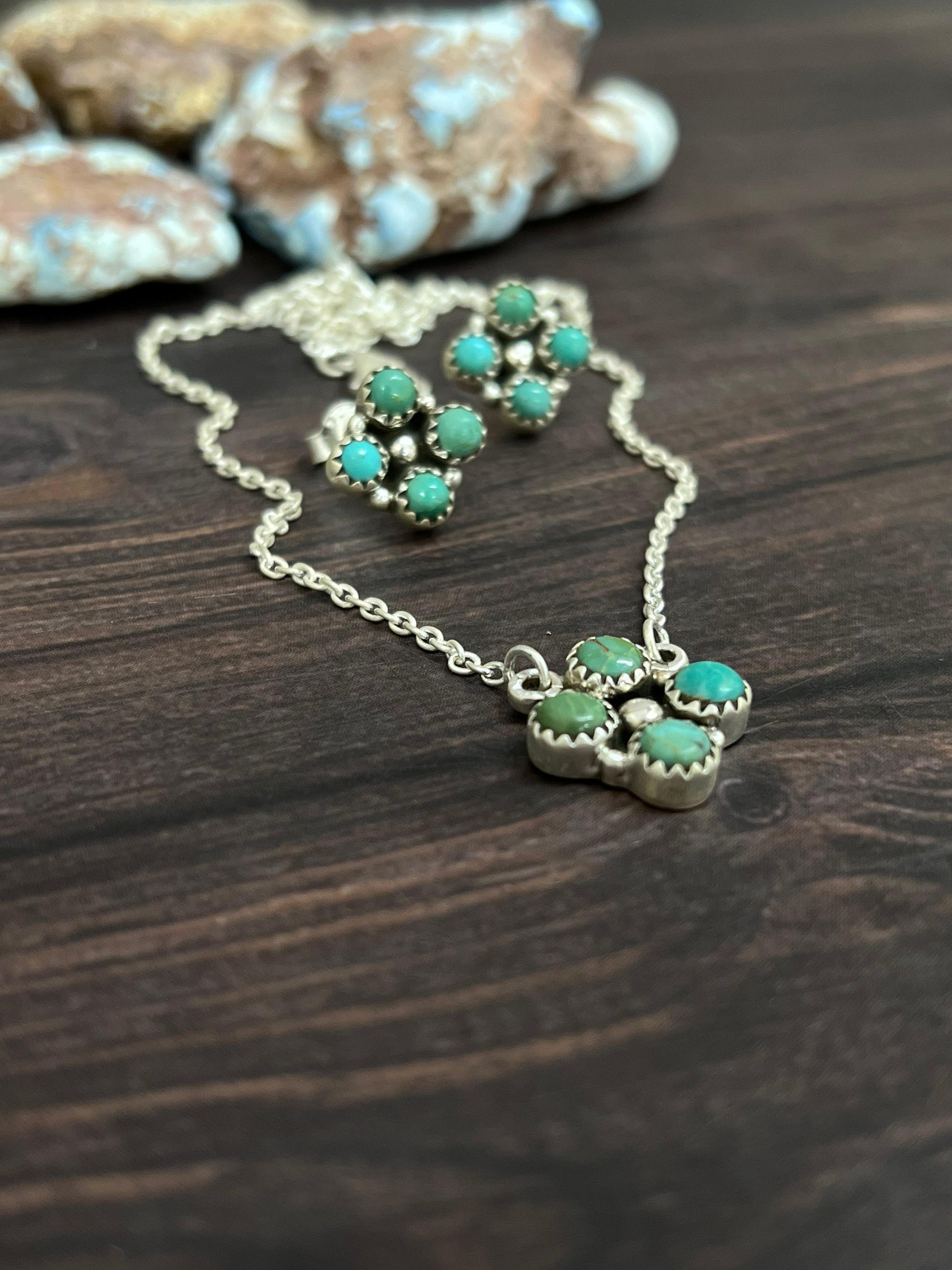 Handmade Sterling Silver Kingman Turquoise Necklace Earrings Set with Signed Nizhoni