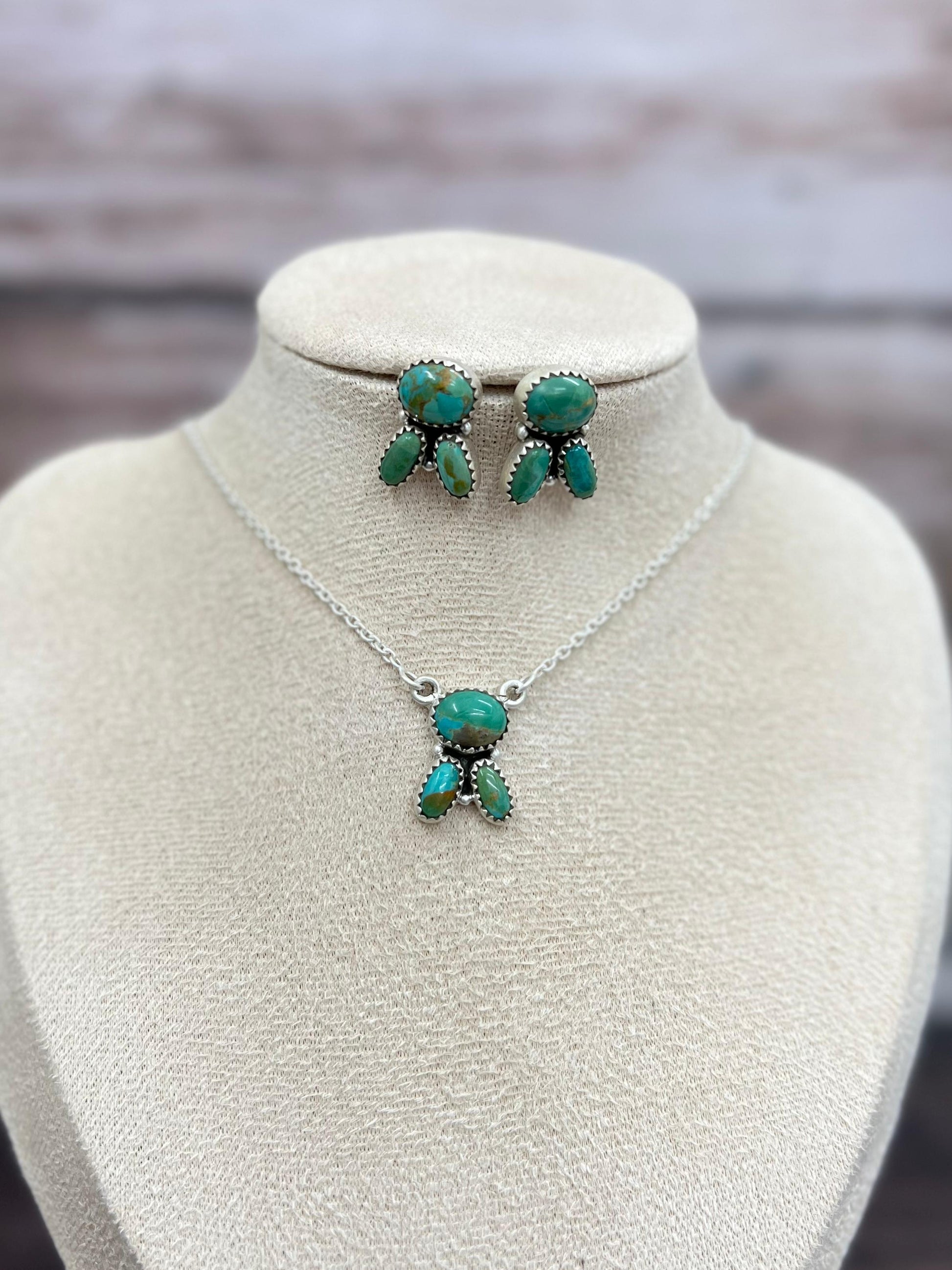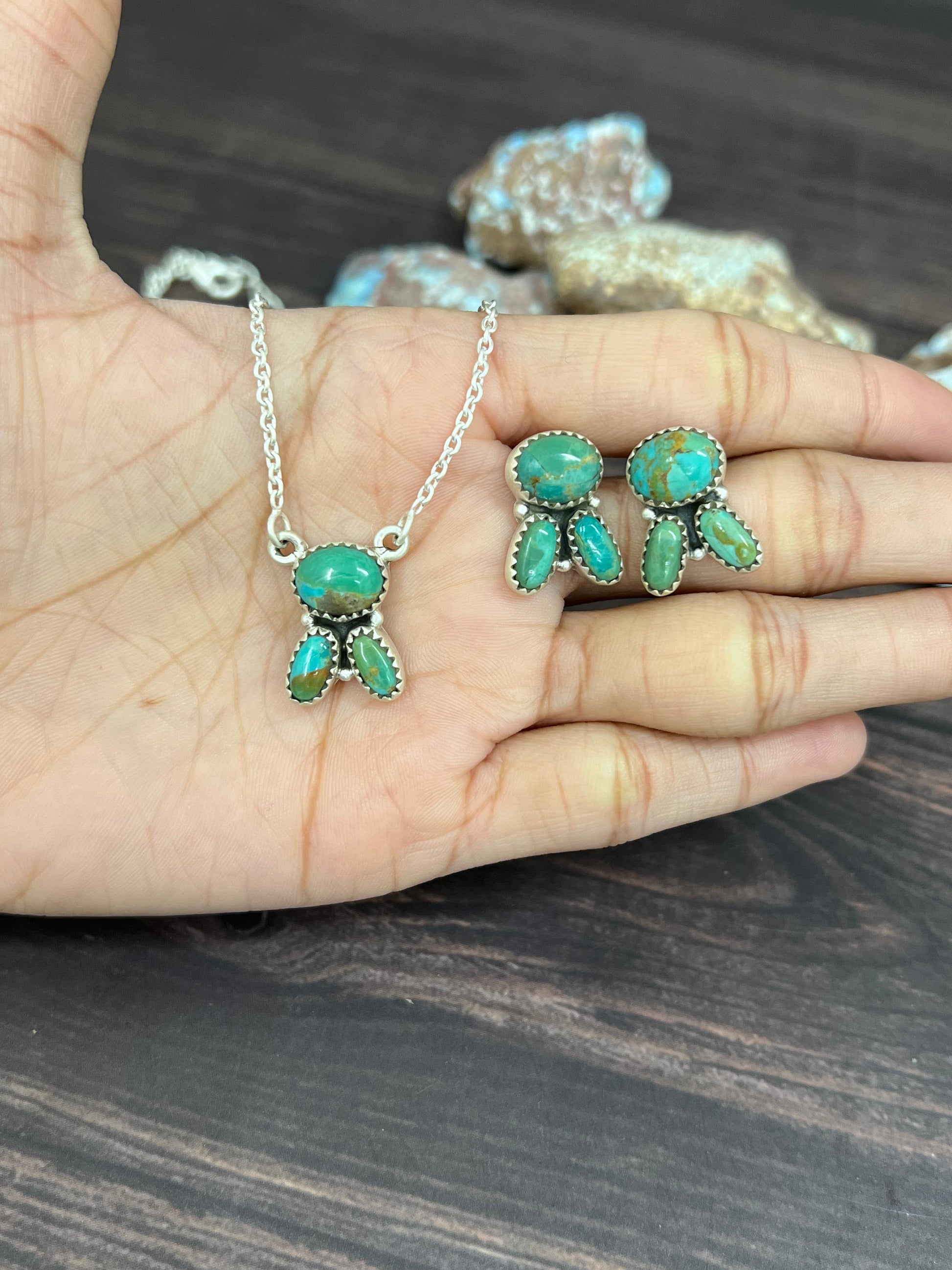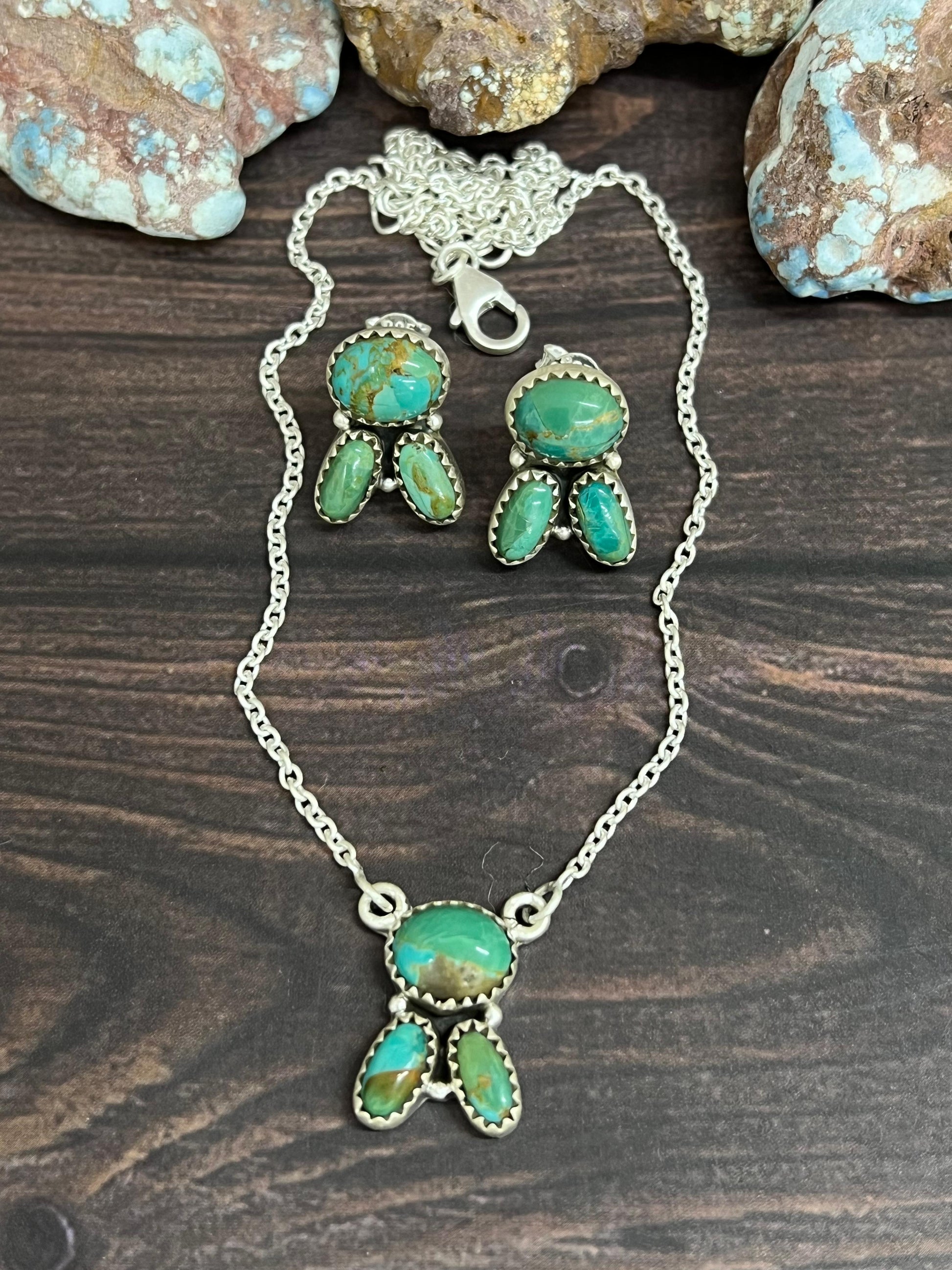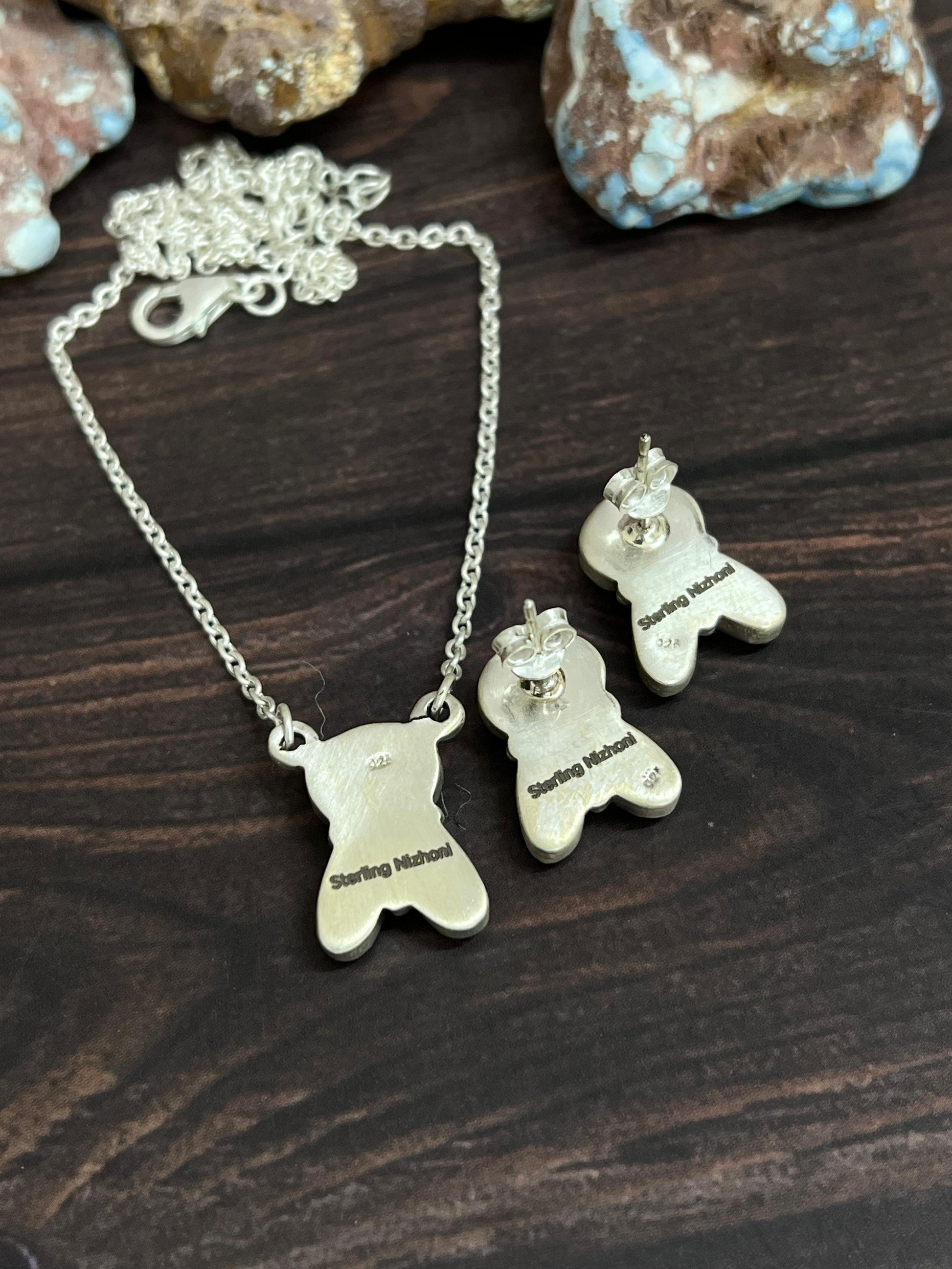 Handmade Sterling Silver Kingman Turquoise Necklace Earrings Set with Signed Nizhoni