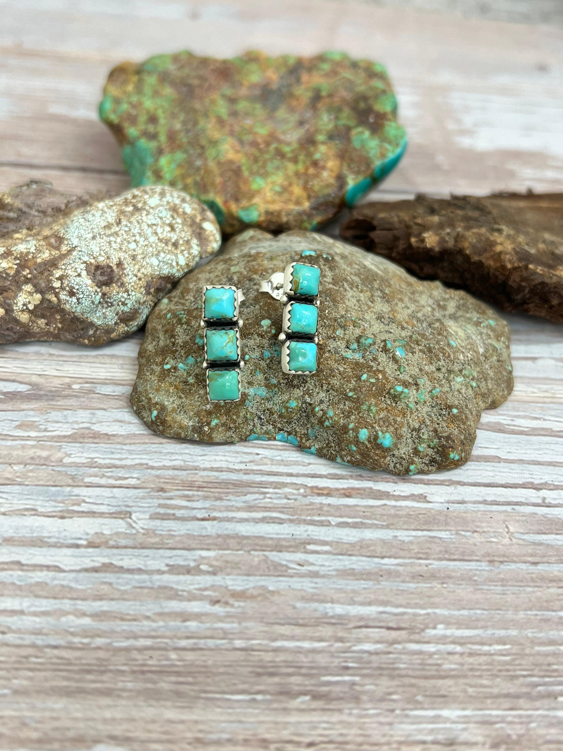 Handmade Sterling Silver Kingman Turquoise Post Studs with Signed Nizhoni