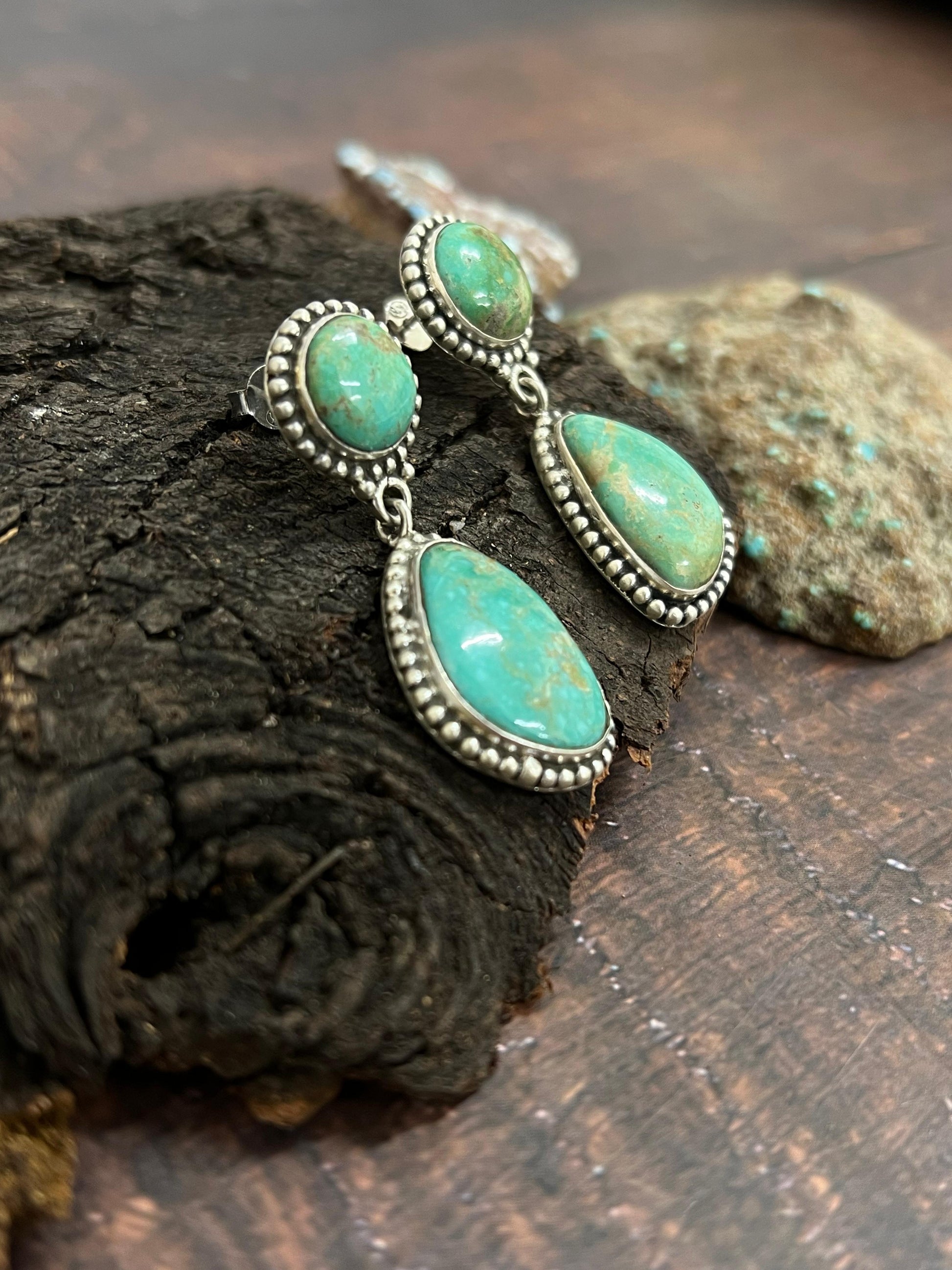 Handmade Sterling Silver Mantis Turquoise Post Dangle Earrings Signed Nizhoni