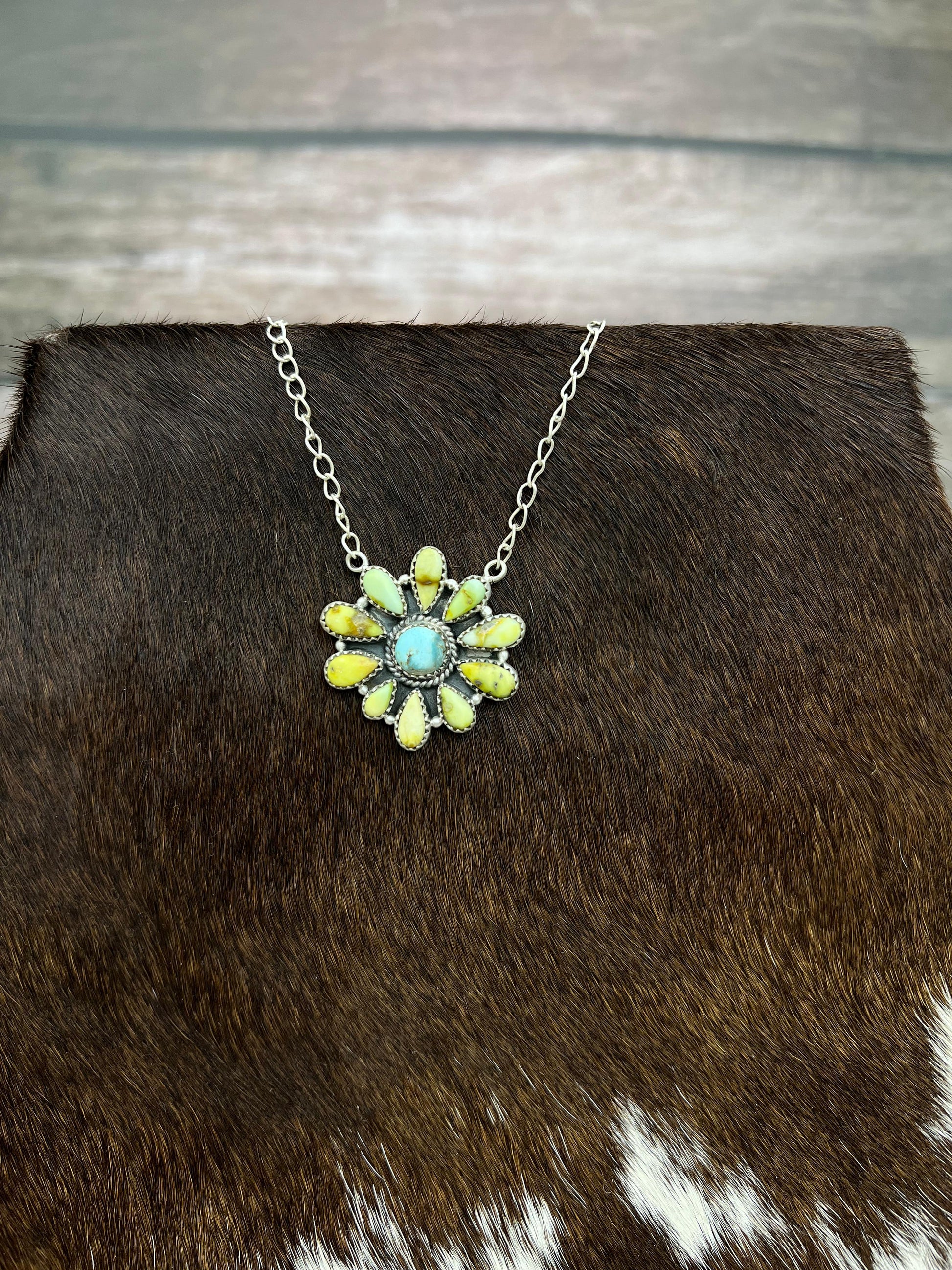 Handmade Sterling Silver Palomino, Golden Hills Turquoise Necklace with Signed Nizhoni