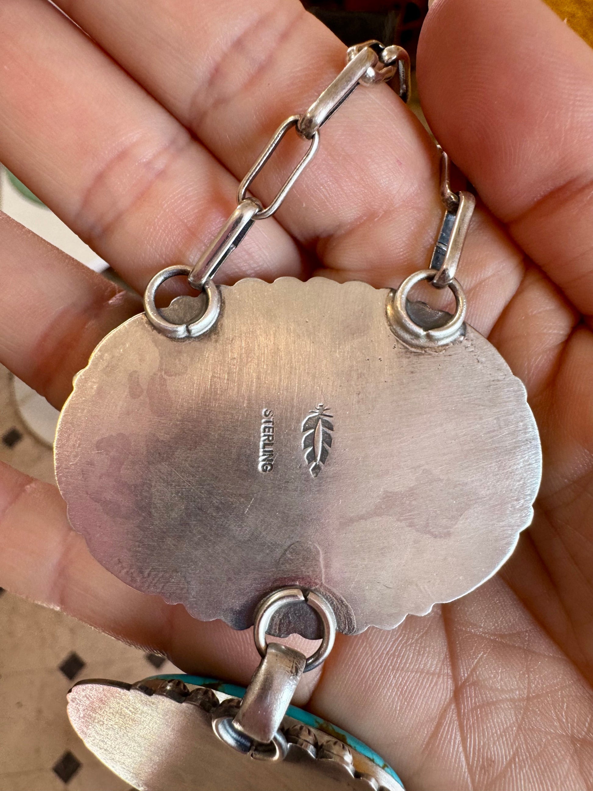 Massive Lariat Necklace – Kingman Turquoise – 19.5 Inch Sterling Silver Paperclip Chain – 8 Inch Drop – Native Made by T. Nez Sr.