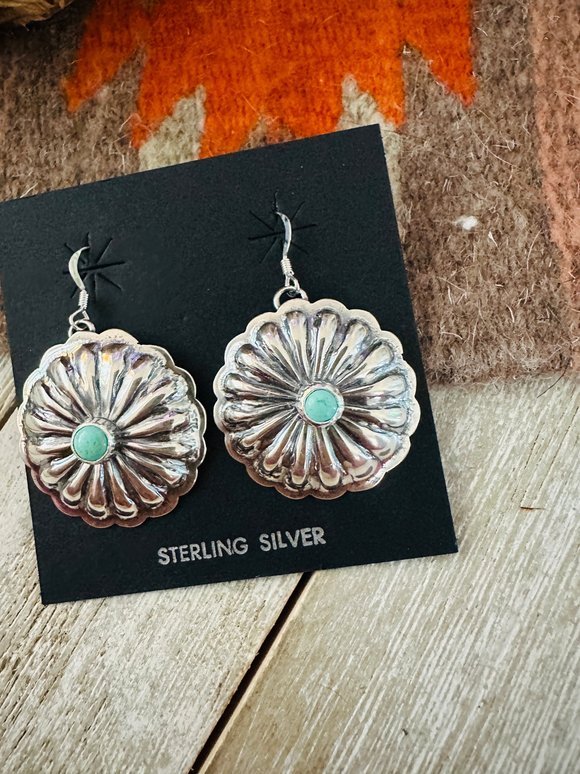 Navajo Turquoise & Sterling Silver Concho Dangle Earrings