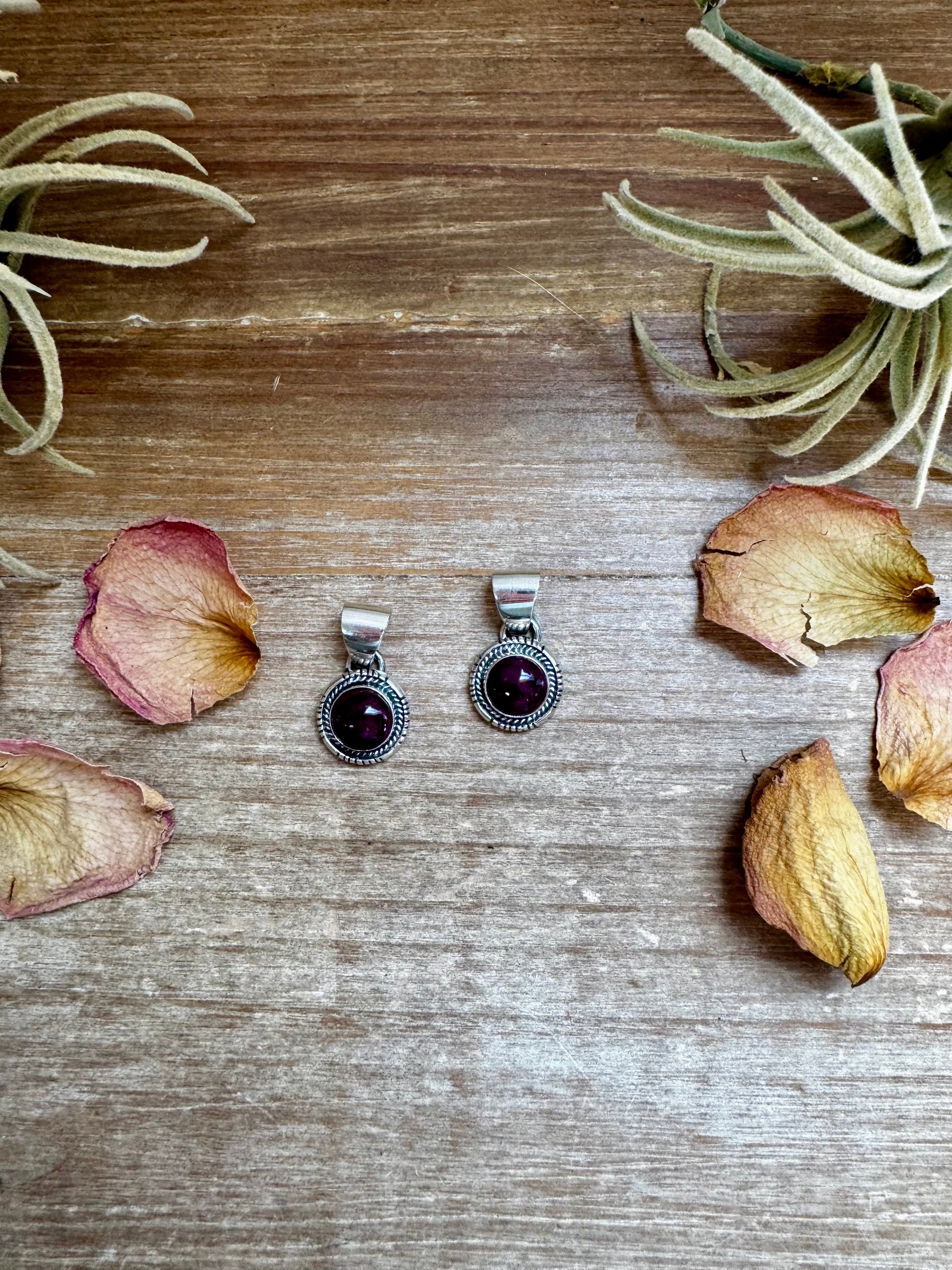 A pop of rich purple in a classic shape. This small pendant features genuine purple spiny oyster set in sterling silver. Fits 6 mm beads and is perfect for layering or wearing solo. A beautiful little statement.