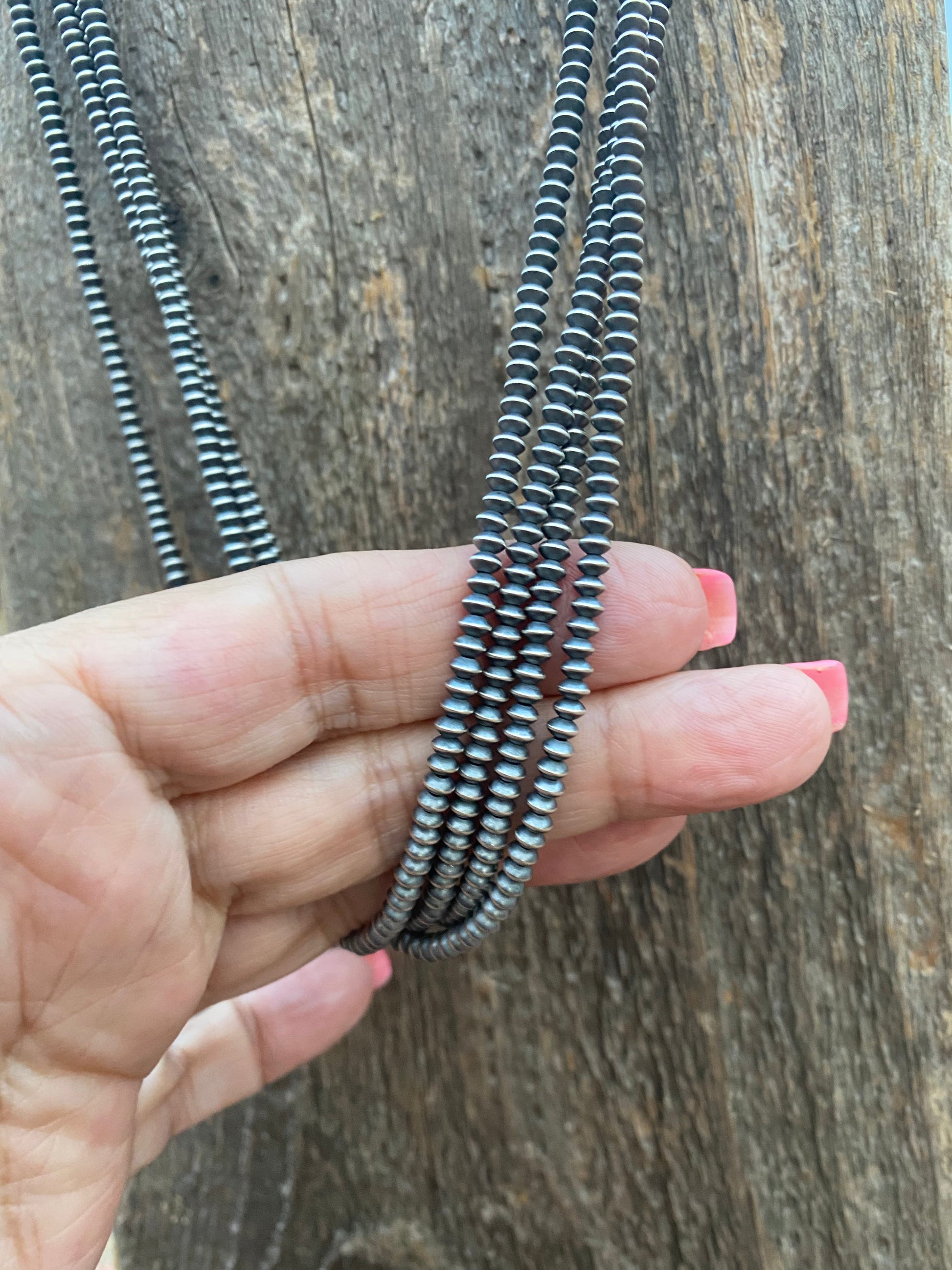 Sterling Silver 3mm 14 inch Navajo Pearl Saucer Beads. Stamped Sterling. LISTING IS FOR ONE STRAND.