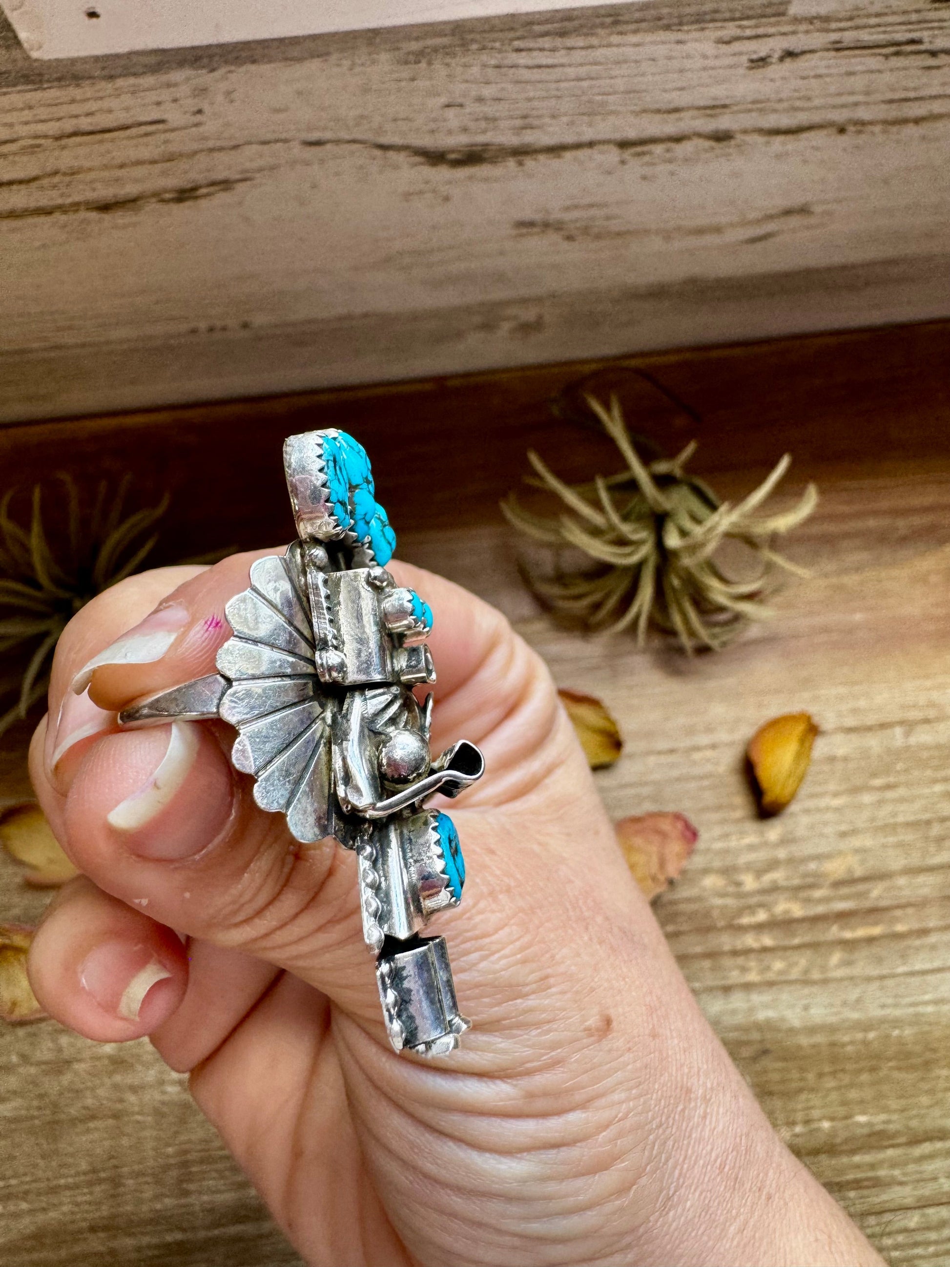 The Kachina Ring – Size 8 – Sterling Silver – Kingman Turquoise – Navajo Handmade