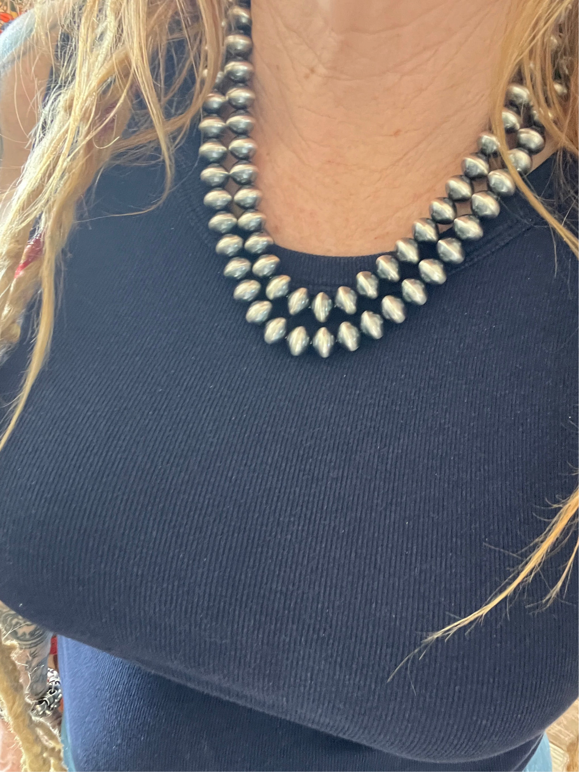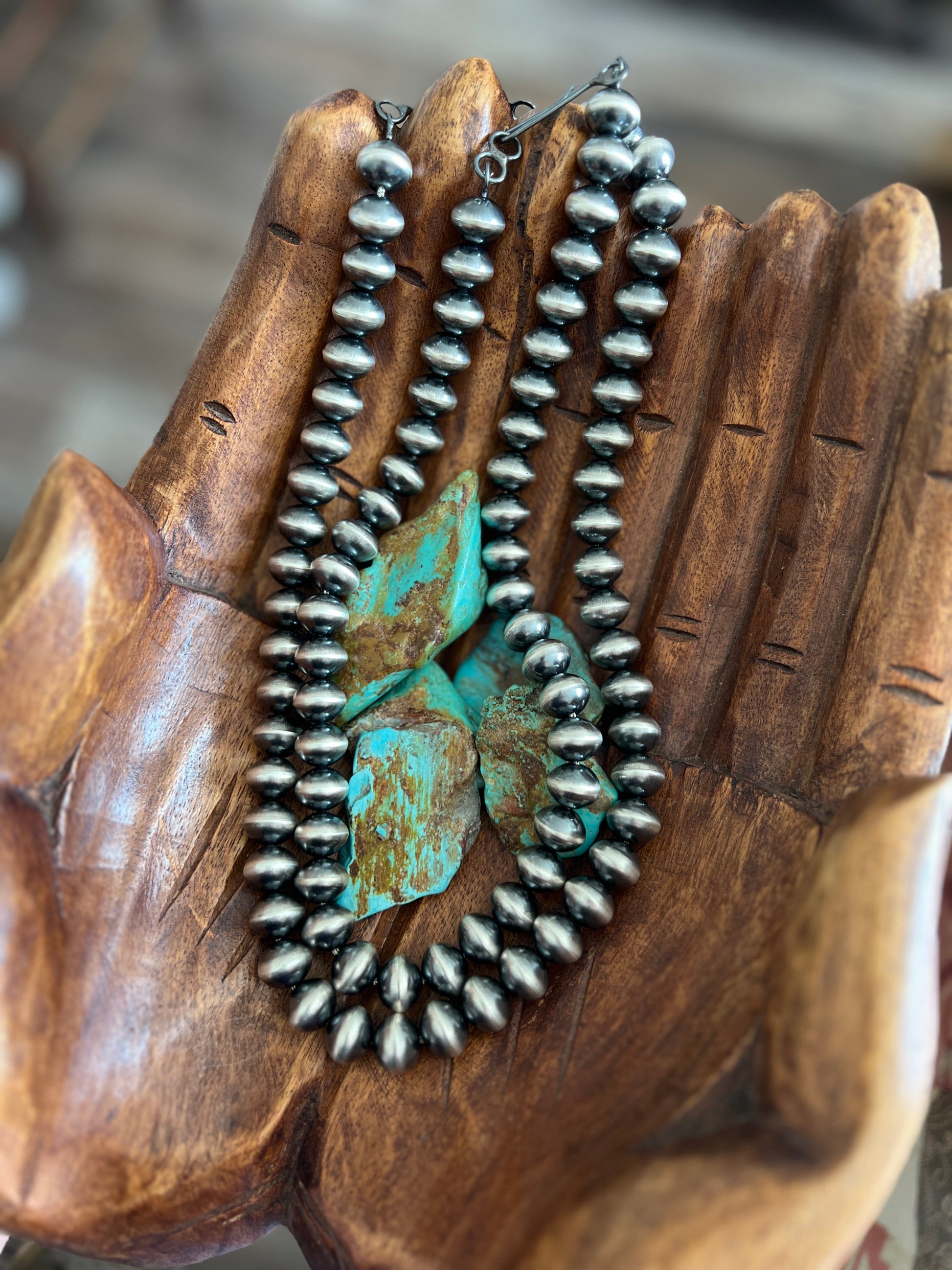Vinita Cowboy Handmade 12mm Sterling Silver Navajo Saucer Pearl Beaded Necklaces