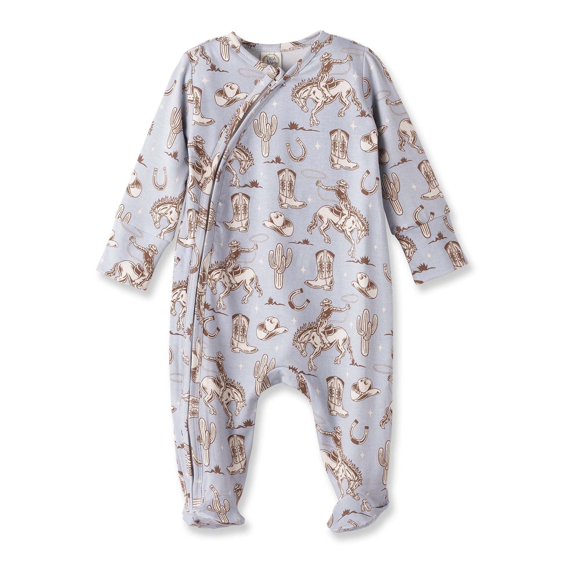 Wild Wrangler/Blue Western Baby Boy Bamboo Zipper Romper