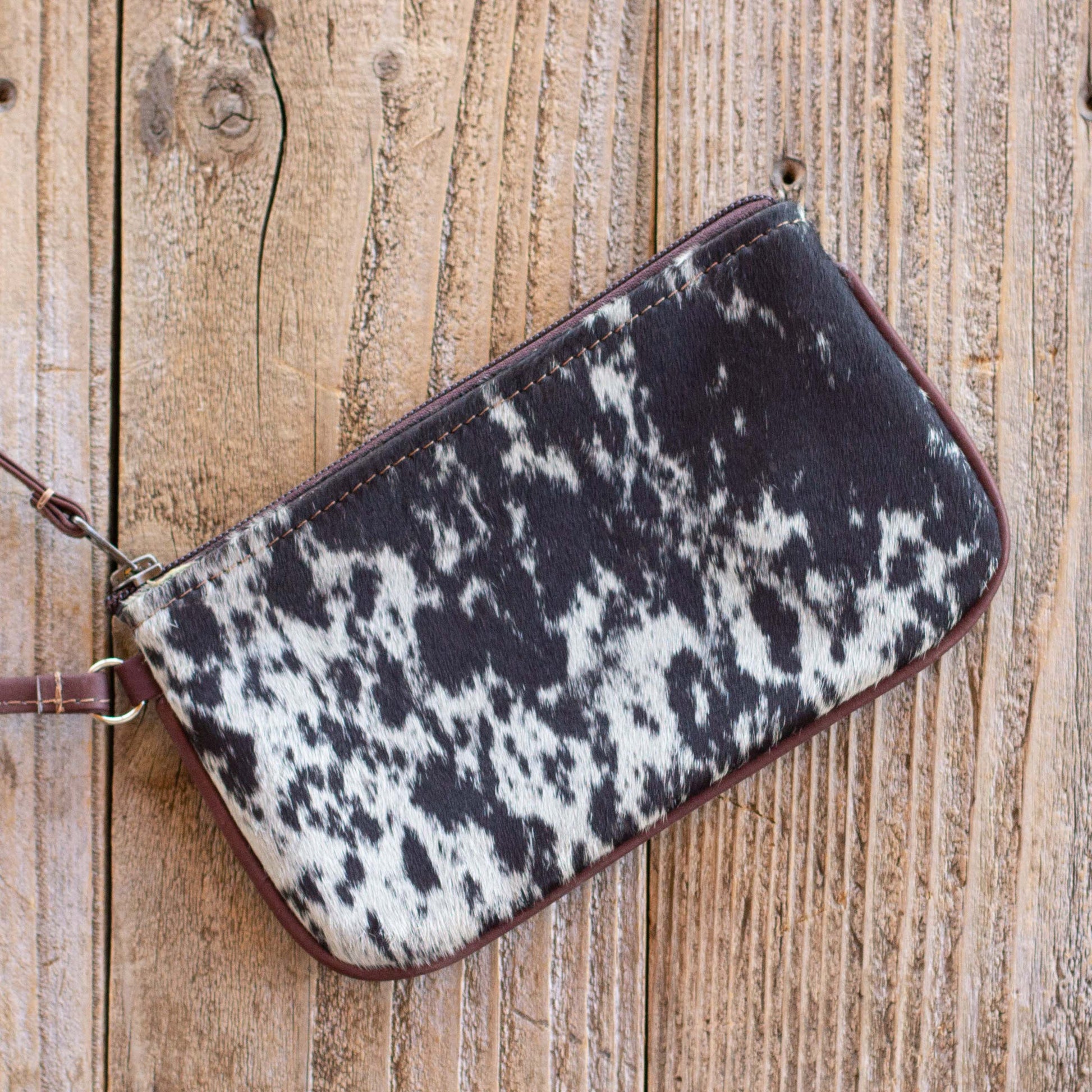 🤠 Stadium-approved Wristlet design with one of a kind cowhide character.Â